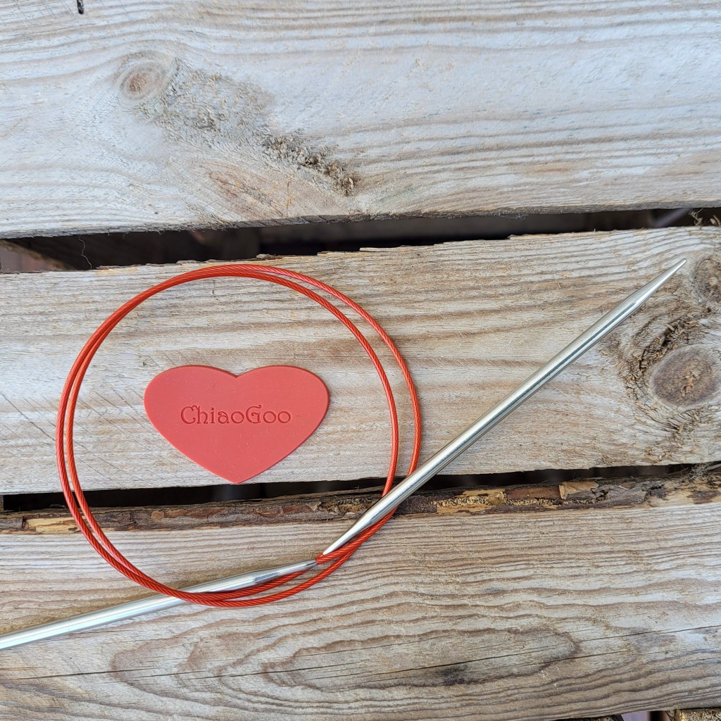 Hvis garnet er glattere, end hvad du er vant til at strikke med, så kan det være det vil føles rarere at vælge en strikkepind, der har mere gnidningsmodstand, som f.eks. bambus eller lamineret træ. Jeg er selv glad for stålpinde, også til Mechita garnet, men synes f.eks. at krom er lidt for glat. Vær opmærksom på, at din strikkefasthed for en given pindestørrelse og garn typisk vil ændre sig, hvis du skifter til andre pinde lavet af et andet materiale.