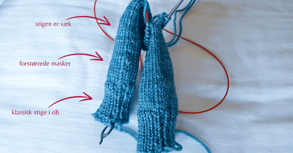 Jeg fik selv stiger i mit strikketøj, første gang jeg kastede mig ud i at strikke sokker med magic loop. Jeg valgte at strikke videre, selvom det ikke var pænt, og så prøvede jeg mig frem, indtil jeg fandt en løsning, der virkede for mig. Det tog en hel del centimeter, men man kan jo bare trævle det op sidenhen. Vi skal tillade os selv at være uperfekte, når vi øver en ny teknik.