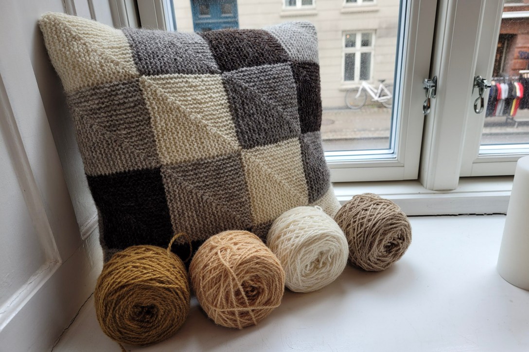 Fjerde del af strikkeguiden til Lomholt Knitalongen, hvor vi strikker en pude i dominostrik. Lær hvordan man kan lave en lukning af pudebetrækket med knapper.